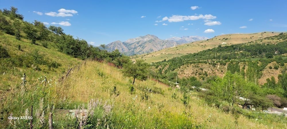 Продаётся участок Таш область Бостанлыкский р-н пос Юбилейный, очень красивая природа, красивые горы, вдоль дороги от Пирамиды 5мину.е. ды, до Чимгана10минут.