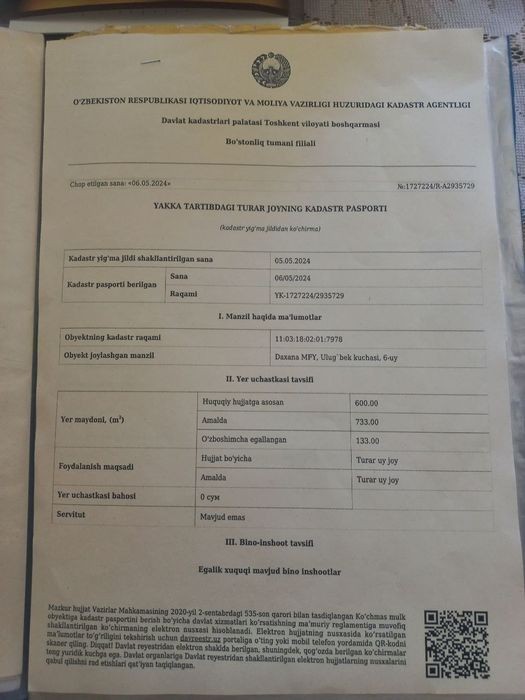 Продаётся дом в Газалкенте. Земля 7,33 сотки, 4 комнаты, подвал, Агв отопление, свет, вода, газ, сараи, двухэтажный гараж. Цена договорная. Звоните по телефону *********