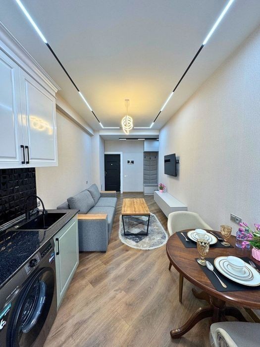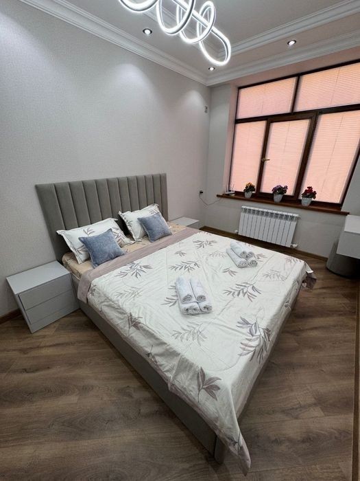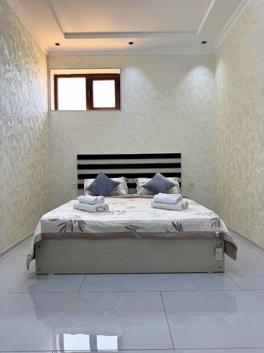 Современная студия на сутки в центре - ул. Рудакий, 77 Уютная и стильная студия с дизайнерским ремонтом расположена в новом доме по адресу ул. Рудакий, 77 на 2 этаже. Идеальный вариант для пары, командировки или путешествия. Всё продумано для комфортного проживания! В квартире есть: Большая двуспальная кровать с чистым постельным бельём Удобный раскладной диван Современный телевизор с плоским экраном Быстрый Wi-Fi Полностью оборудованная кухня: плита, холодильник, посуда, чайник, стиральная машина Обеденная зона на 2 персоны Кондиционер и отопление Современная ванная комната с душем, полотенцами и феном Дополнительно: Автономное отопление Новый жилой комплекс Чистый подъезд, домофон Рядом магазины, кафе, аптеки и остановки общественного транспорта Удобное месторасположение - быстрый доступ к центру города. Заселение 24/7, оформление по