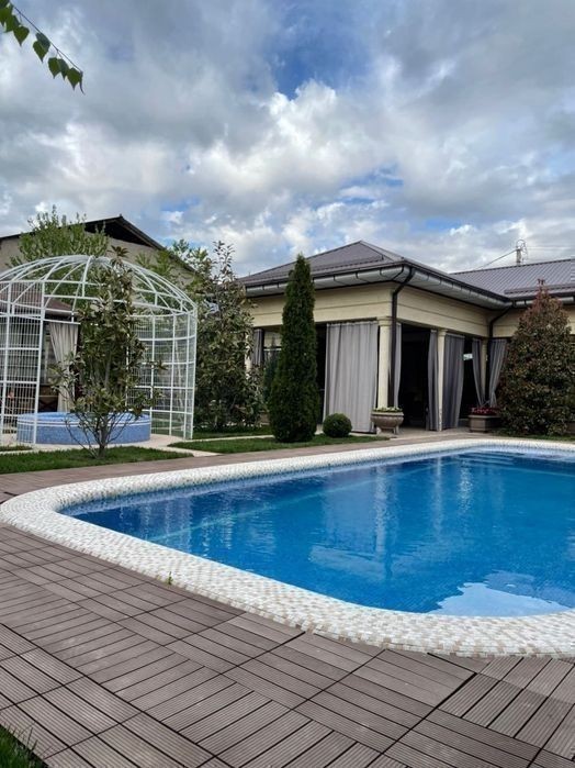 Продаётся новая Евро дача Площадь: 8 соток Комнат: 5 Ташкентскый область, Бустанлыкский район, Ориентир: Хумсон Летний, зимний бассейн Сауна Финская. Кухня летний и зимний. Цена: 210 000 у.е. торг уместен