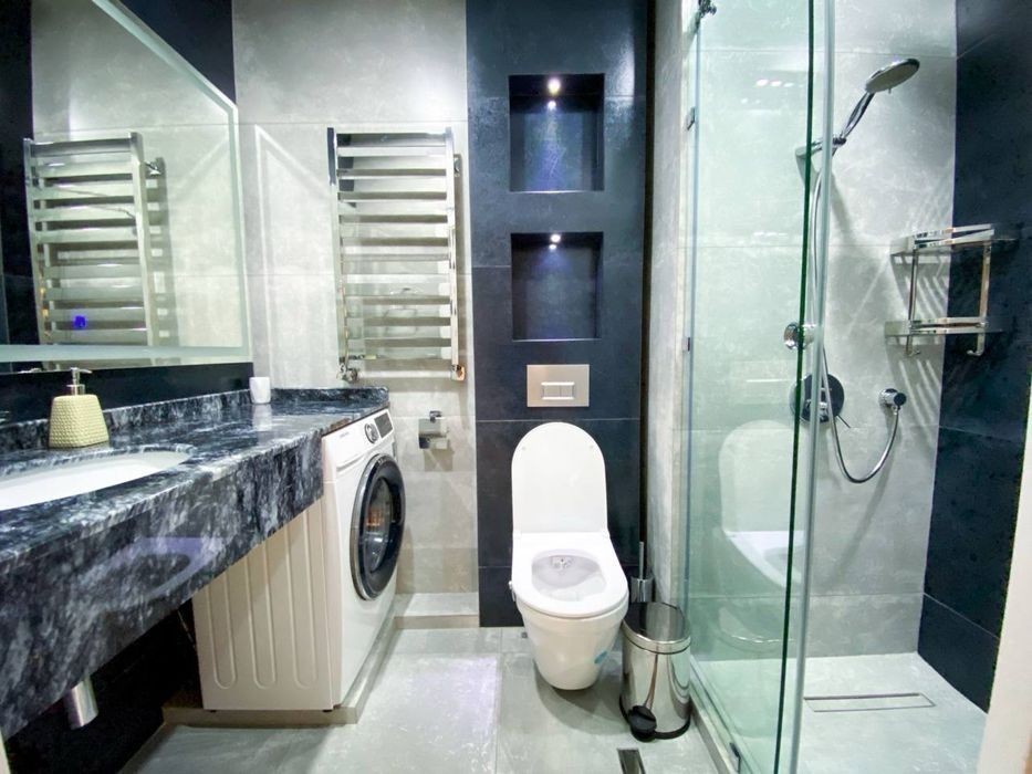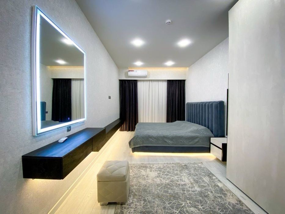 For rent 3/11/25 apartment 100 sq.m. HI-TECH in the new building AKAI CITY for a long term (from the owner of the apartment) - 11th floor of a 25-story elite new building - designer renovation, HIGH-TECH - built in 2021 - 100 sq.m. spacious 3 rooms + kitchen + two bathrooms - Living room + kitchen - 40 sq.m., (the kitchen can be divided by a glass partition) - Bedroom - 20 sq.m., children's room 15 sq.m., spacious hall - Two bathrooms, one with a BATH, the second with a shower cabin - Ideal location, city center. 2 minutes from the metro station Hamid Alimjan. - PANORAL windows looking out to the mountains, towards the sunrise (no obstacles limiting the view), - Prepayment for 3 months + 1 month deposit - Real photos - 1,950 USD per month (can be transferred from the company), discounts are possible, - Additional discounts from the 4th month of rent + ********* Nurulla (owner of the apartment) WRITE TO TELEGRAM - WE WILL SEND A VIDEO OF THE APARTMENT
