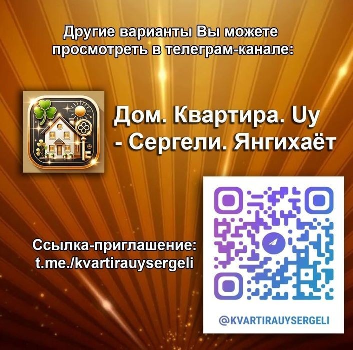 Продаётся бюджетная 1-комнатня квартира (18 м²). 1/1/4 (1-этаж). Бывшее общежитие. Спутник-4, Янгихаёт р-н (Сергели). Метро "Turon (13-bekat) - 300 м! Общая площадь 18 м². Состояние среднее, чистая. Газа нет - электроплита. Горячая вода - центральная. Отличная локация и инфраструктура! Рядом Index, магазины, до метро "Turon" 5 минут пешком, рынок Ярмарка, сергели-2, 3 - 400 м. Green Park - 400 м. Метро "Chinor" (5-bekat) - 800 м. Документы в порядке, кадастр индивидуальный! Цена $21900 (Только за наличный расчет) Хотите посмотреть или узнать подробности? Звоните! + ********* Другие варианты смотрите в телеграм-канале "Дом. Квартира. Uy. - Сергели, Янгихаёт".