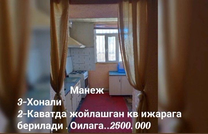 Манеж да кв ижарага берилади. Оилага Закс бн. Студентларга берилмайди. Маклер хизмати алохида олинади.