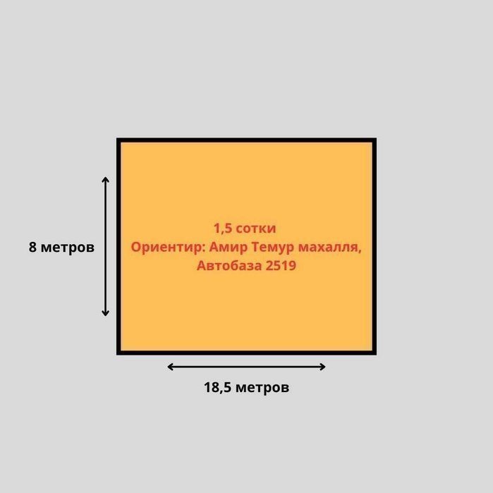 Продаётся участок угловой Район: Мирзо-Улугбекский Улица: Шабода Ориентир: Амир Темур махалля, Автобаза 2519 Площадь участка: 1,45 сотки Форма участка: 8 х 18,5 Цена: 75.000уе + ********* + *********