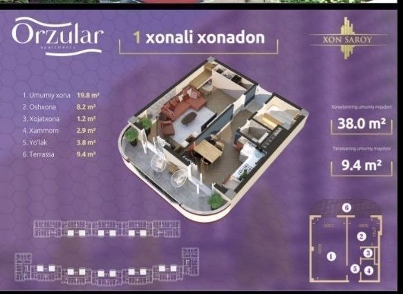 Xonsaroy Orzular loyihasidan kvartira sotiladi 16 etajlik domning 6 etajidan elektrik ishi qilingan Turkiston metro yaqinida
