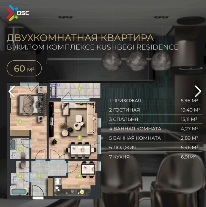 Продаю свою квартиру в Ж. К. Кушбеги Резиденс 60м2 по улице Шота Руставели и пересечение ул. Кушбеги