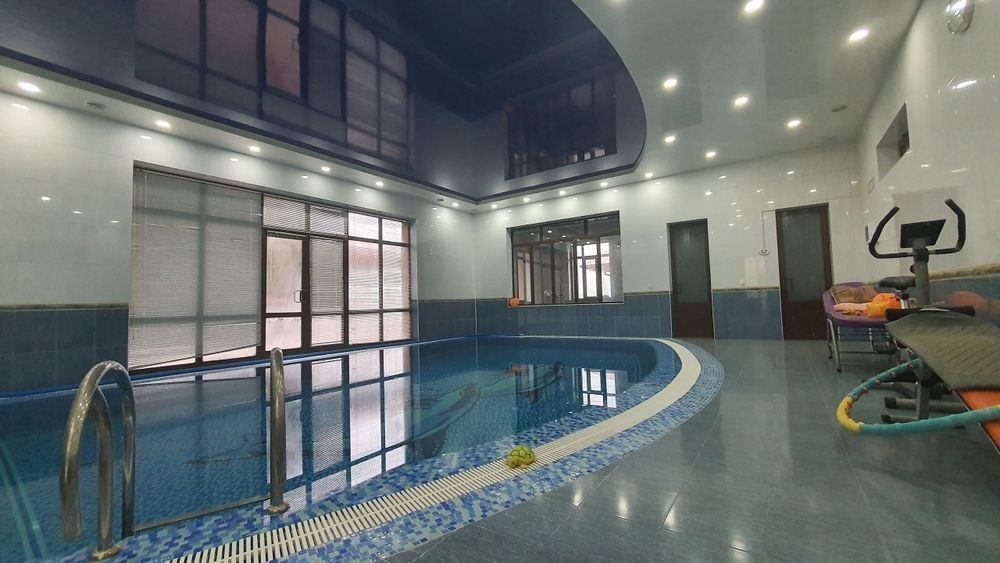 Продаётся шикарний дом 10 сотик 7 комнат 2 этажний закритий бассейн, туретская сауна, тренажорний зал, соливая комната, свет оделний трансфарматор, газ оделний грп Кадастр желой Адрес город чирчик Прописка Контакт *********