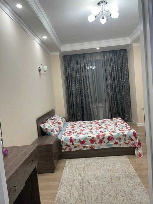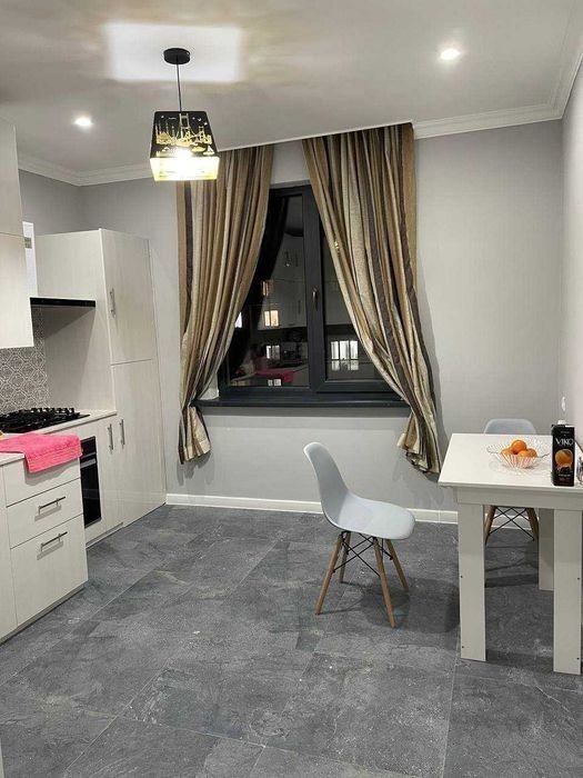 5 комнат, 186 кв. метр, 2х этажная квартира, все комнаты раздельные, Сергели7, Кирпичная НОВОСТРОЙКА 2021 года, тёплый пол, высокие потолки, между 3 и 4 линией метро (3мин. от метро), 2 сан. узла, просторная гостиная с панорамными окнами, своя детская площадка, зимой теп. Внутри мебель, холодильник, плита, стиральная машина, телевизор, кондицирнеры. Под домом магазины, дет. сад, школа №300.