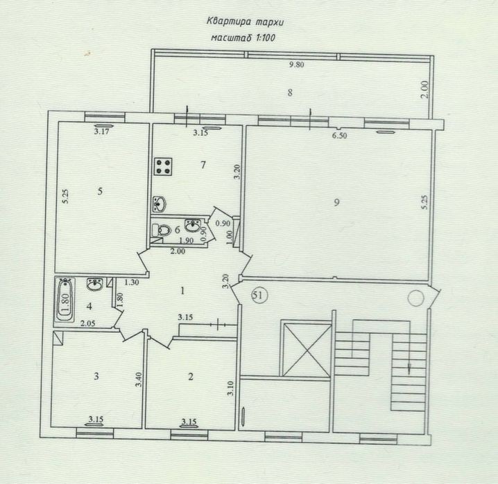 Продается 5 комнатная квартира, 8/9, 135 кв м. Требует ремонта. Локация - Яшнабадский район, ул. Чулпон, массив Тузель 3.