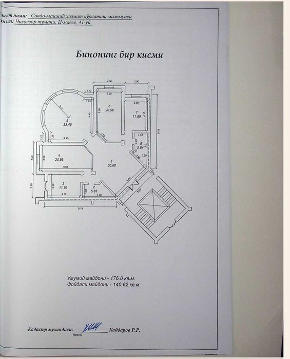 Ц квартал, массив Чиланзар, улица Катартал пересечение с ул. Мехр недалеко от Медиа Парк, Туйхона "Окшам", Городское ГАИ, метро Чиланзар, метро Мирзо Улугбек, Хакимият, Налоговый комитет быв. 5 й таксопарк Чиланзарского района. Продается новостройка закрытый охраняемый жилой комплекс : Дуплекс на первом и цокольном этаже 8-ми этажного кирпичного дома, дом заселен, кадастр есть. Первый этаж: Высота потолков 3.30 метров, просторная кухня, Зал 50 кв. м, холл 30 кв. м, большая спальня собственным санузлом, две детские комнаты, два санузла, разделено по комнатам, стяжка полов, стены отштукатурены. Цокольный этаж: Коробка свободная планировка, семь окон, высота потолков 3 метра Общая площадь: 331м² Два кадастра первый этаж жилой, цокольный этаж в нежилом фонде. Цокольный этаж: 176м² высота потолков 3метра. Первый этаж: 155 м² высота потолков 3.30 метра. Район имеет развитую инфраструктуру: школы, детские сады, магазины супермаркеты, развлекательные заведение, больницы поликлиники. Для более подробной информацией звоните. Собственника недвижимости представляет: ООО «GOLD REAL ESTATE