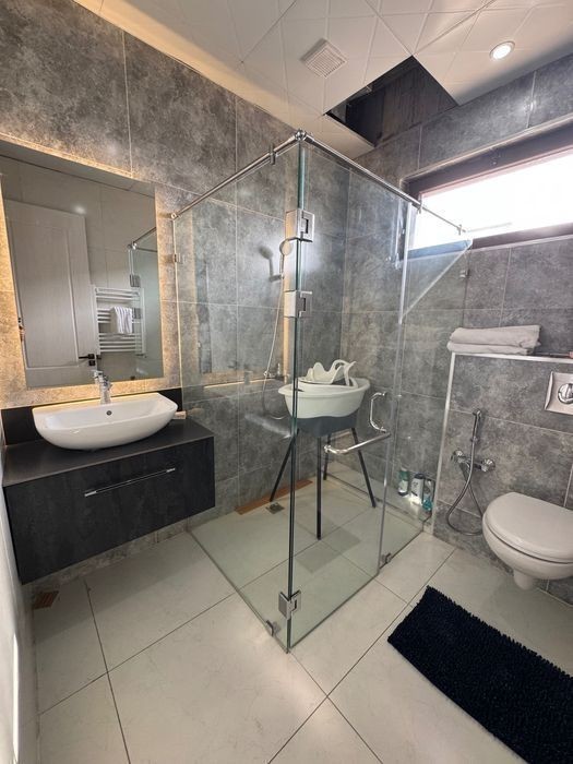 3к квартира на 8-м этаже с обстановкой. Турецкая мебель, дизайнерские столы, встроенные шкафы с качественной фурнитурой и стеклянными полками, кухня- студия более 50 м. кв, - индукция 4 конфорки + 1 газовая на одной поверхности, большой холодильник LG, духовка, микроволновка, кофемашина Hoffman, бар с подсветкой, на полу во входной зоне и кухне-студии и балконе присоединенном к кухне с кафельное покрытие, есть балкон, выход на балкон из мастер-спальни и залы. Все окна панорамные. Камеры видео наблюдения, домофон, фейс контроль. В стоимость входит WiFi, вода, отопление. Электроэнергия оплачивается арендатором. При любом сроке аренды необходим залог 600$, эту сумма вам возвращается при выезде с квартиры. Стоимость аренды На 1-2 месяца 1200$\ месяц На 3-5 месяцев 1000$\ месяц На 6 месяцев и более -900$