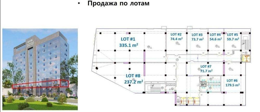 Продаются офисные помещения! БЦ "А" класса "KUBC" Ориентир: ул. Сеул, рядом ресторан Gunaydin и Seulmun Площадь каждого уровня: 1280 м² В продаже: 2 этажа Назначение: офисные помещения Имеется 3 уровня подземной парковки Цена: 8 этаж - 3.200$ за м² 3 этаж по лотам - 2.600$ за м² Ф\О любая имеются в наличии: LOT #4 - 54.6 м² LOT #5 - 59.7 м² LOT #6 - 179.5 м² LOT #7 - 71.7 м² LOT #8 - 237.2 м² Тел: + *********