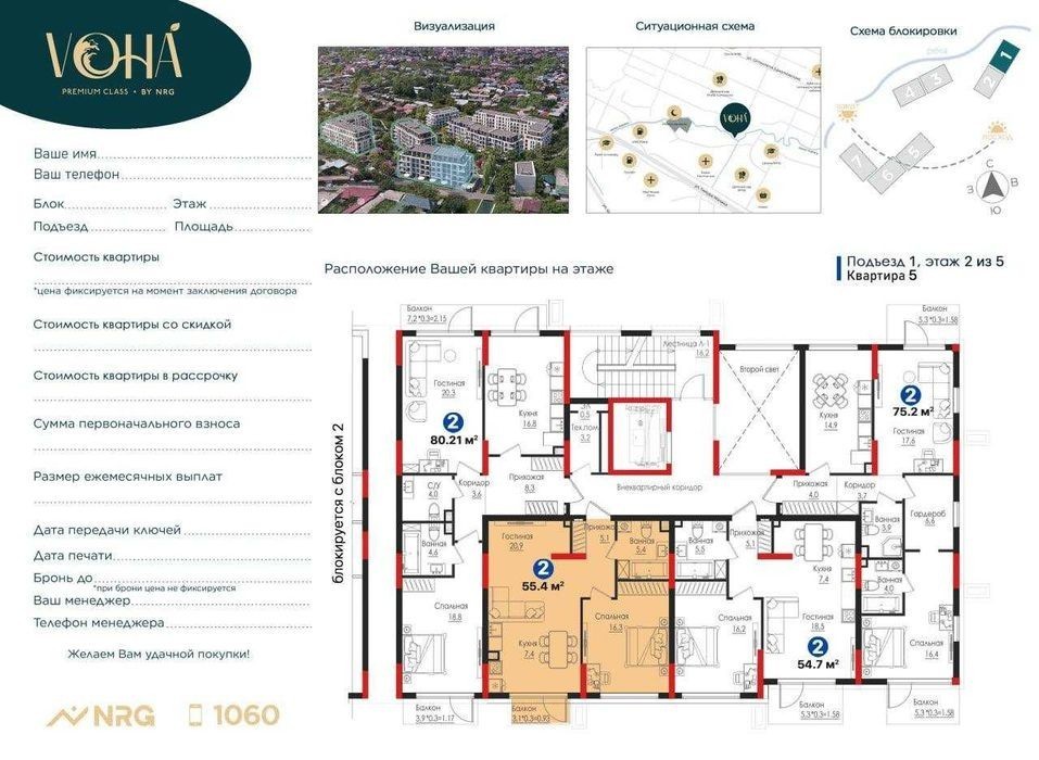 Район - Мирзо Улугбекский Новостройка - ЖК NRG VOHA Комнат - 2 Этаж - 2 Этажность - 5 этажей Площадь - 55,40 м² Состояние - черновая отделка Цена за м² - 2 600$ Общая стоимость - 143 598$