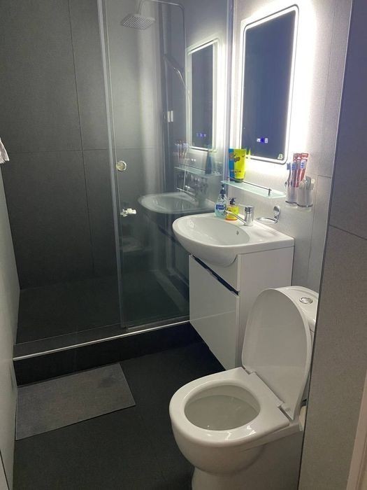 2этажа 1родительская спальня на втором этаже 1 дополнительная с раздельными кроватями на втором этаже Можно использовать как детскую Одна душевая с туалетом совмещённая комната Первый этаж гостиная и кухня Есть теплый пол, кондиционер, холодильник, микроволновка, стиральная машина, телевизор. Без маклера 800 доллар