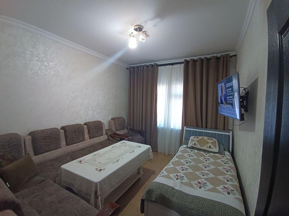 Toshkent shaxar yunusobot tumani 8 mavze kochani yuzida joylashgan 5 qavatli uy 3 qavat 4 xonali umumiy maydoni 114 kv mexmonxona 5/6 balkon 3/6 xolati yaxshi oldida boğcha va maktab unversam bozorga va metroga 10 daqiqali yol 8 mavze móljal yunusobot gallery qarshisida tel *********