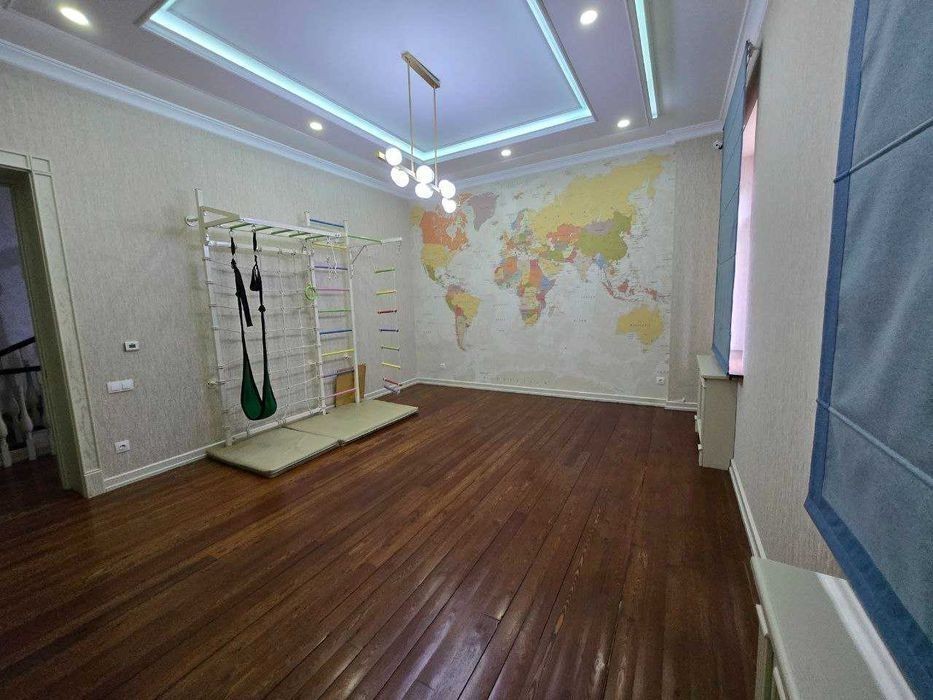 Сдаётся в аренду большой дом на Никитина / Циалковской, со всеми возможными удобствами. Имеется: Двор: - парковка во дворе на 2 машины - зеленая зона - Тапчан - летняя кухня Дом: - 4 этажа (2 основных + подвал + мансарда) - 4 спальни, каждая со своим сан узлом и гардеробной + детская игровая комната (можно также переделать в спальню) - 2 зала (один полностью с мебелью) - полностью оборудованная кухня Другие удобства: - домашний кинозал, тренажерный зал, бассейн, сауна, прачка, кладовка, намозхона, рабочий кабинет, терасса