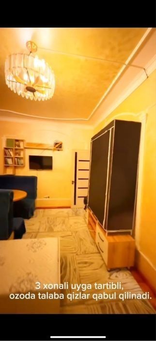 Yashnobod metrosi ro‘parasidagi 3 xonali uyga talaba qizlar kerak. Uy sharoitlari: • Divan, mebel, kir moshina, televizor, Wi-Fi • Dars qilish uchun qulay joy • Toza va shinam 3 xonali uy Narxi: oyiga 1 200 000 so‘m Aloqa: *********