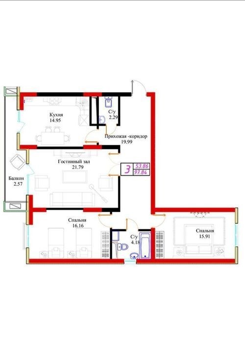 - 93 м²