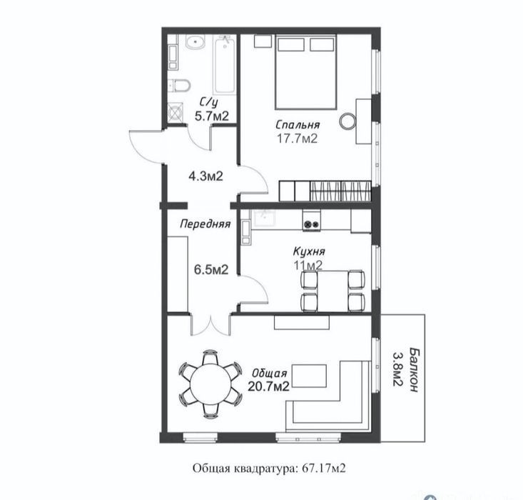 - 68 м²