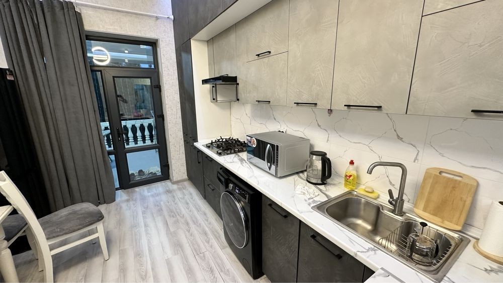 Ощутите комфорт и атмосферу Ташкента в этих стильных и светлых апартаментах площадью 77 м², расположенных в современном жилом комплексе Renessans, прямо напротив Паркентского базара. Квартира идеально подойдёт для иностранных гостей - как для отдыха, так и для деловых поездок. Она находится в безопасном, тихом районе, в пешей доступности от магазинов, кафе, круглосуточной аптеки и главных городских маршрутов. А главная изюминка - уютная летняя терраса, где можно начать утро с кофе или завершить день с бокалом вина. Что вас ждёт: • Полностью оборудованная кухня (посуда, техника, всё необходимое) • Просторная гостиная с большим SMART TV • Две изолированные комнаты • Раздельный санузел • 2 кондиционера • Быстрый Wi-Fi • Свежие полотенца, постельное бельё и гигиенические принадлежности • Лифт • 3-й этаж 9-этажного здания Рядом с квартирой: • Супермаркет под домом (открыт до 00:00) • Паркентский рынок через дорогу • Кафе, рестораны, аптека 24/7 • «Улица ресторанов» - всего в 400 м Наша миссия - создать для вас атмосферу уюта и комфорта, в которой вы почувствуете себя как дома. Мы внимательно следим за чистотой, прислушиваемся к каждому отзыву и всегда готовы стать лучше - ради вашего удобства и спокойствия.