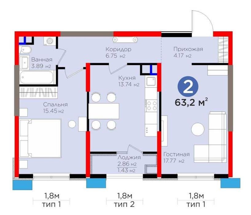 - 62 м²