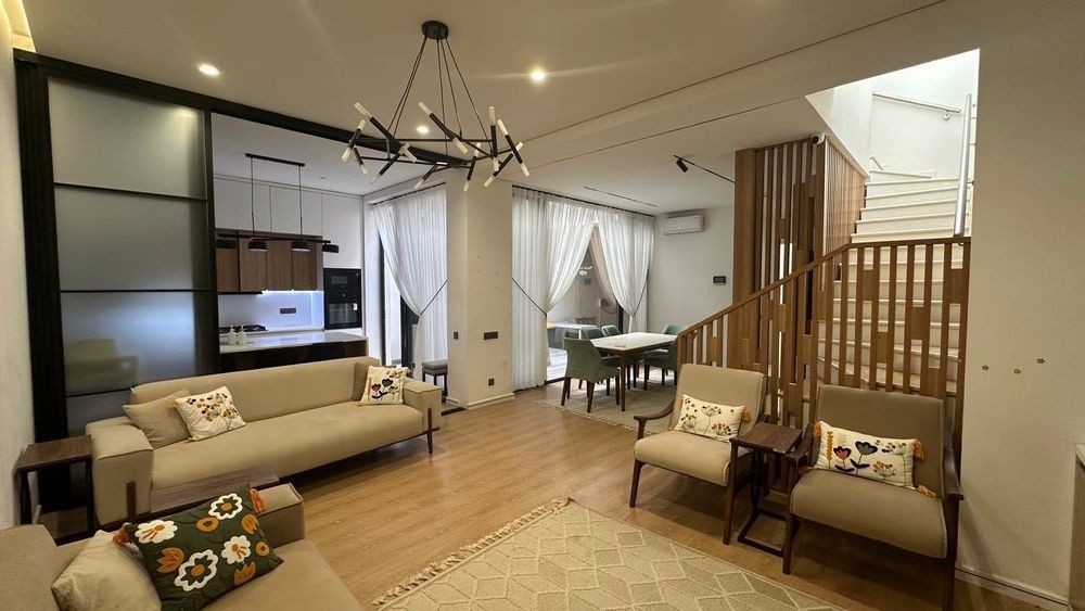 Продается Коттедж Юнусабадский район Тип: 3-уровневый участок Ориентир: Гидрометцентр Характеристики: Этажей: 3 Площадь участка - 1.6 сот Площадь: 240 м² -1 этаж: комната свободного назначения, прачесная 1 этаж: кухня, гостиная, 1 спальня 2 этаж: 4 спальни 2 с/у, терасса Дополнительно: Зарядка для электромобиля, парковка на 2 машины.